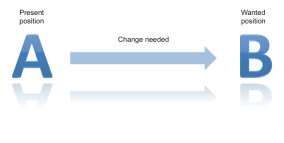 All communication is about creating change. The change can really be anything; a new market position, organisational change, implementing a new strategy etc. A represents the present position and B the wanted position. And the change is from A to B.